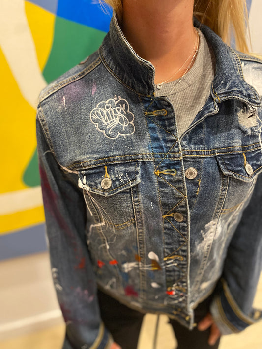 Chaqueta Jean “Pata Sucia” - Técnica mixta sobre denim - Talla Mujer Mediana - de Pedro AMOS - 2022